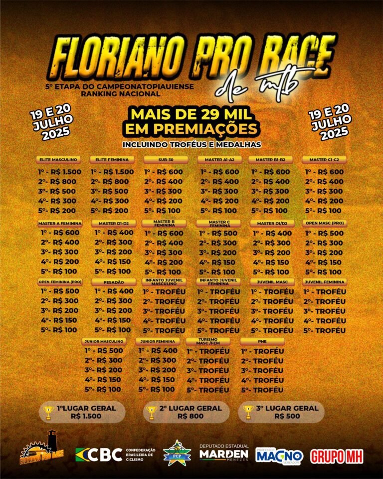 Esporte Floriano Pro Race de MTB movimenta cidade com mais de R$ 29 mil em premiações 18 de July de 2025 No Comments
