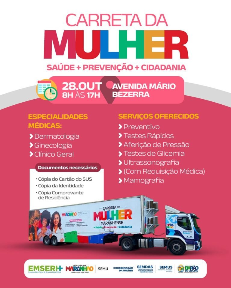 Saúde Carreta da Mulher Maranhense estará em Barão de Grajaú no dia 28 de outubro com atendimentos gratuitos 23 de October de 2025 No Comments