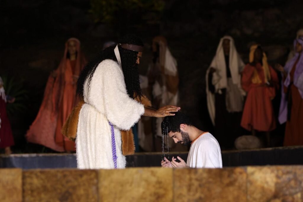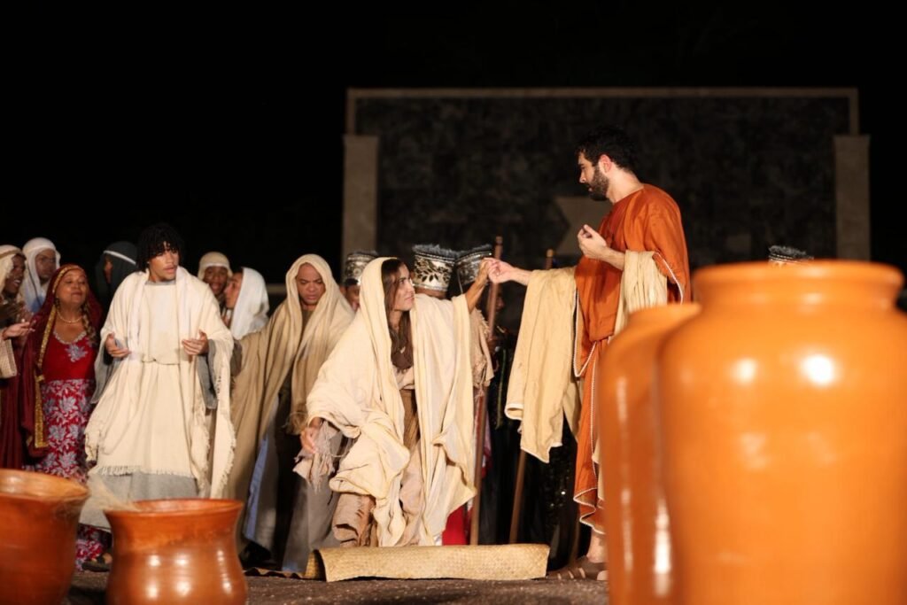 A responsabilidade de dar vida a figuras bíblicas icônicas exigiu meses de ensaios intensos, e o nervosismo inicial logo se transformou em entrega total assim que as primeiras luzes iluminaram os cenários.