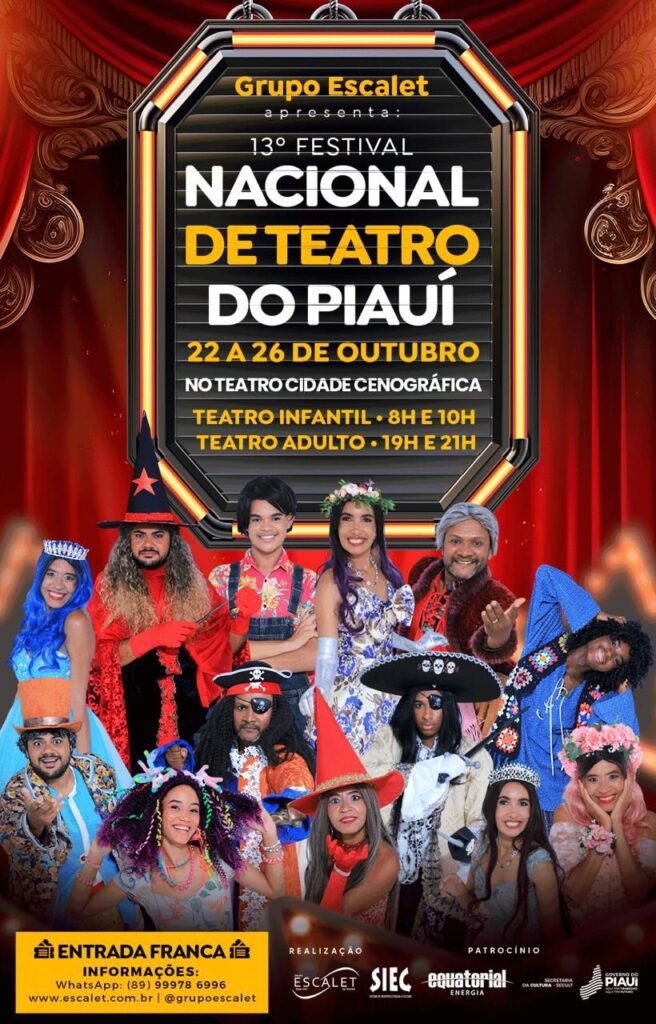 O 13º Festival Nacional de Teatro de Floriano é uma realização do Grupo Escalet de Teatro, com apoio da Equatorial Piauí, SIEC, Secretaria de Cultura e Governo do Estado do Piauí.