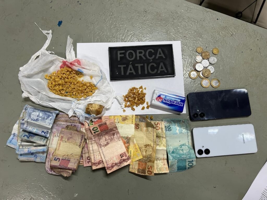 Na sequência, os militares encontraram outra bolsa ao lado do suspeito, onde foram localizados mais dois invólucros da mesma substância entorpecente. O próprio indivíduo assumiu a propriedade do material ilícito.