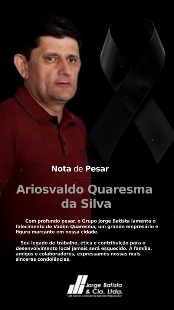 O Grupo Jorge Batista emitiu, nesta sexta-feira (23), uma nota de pesar pelo falecimento do empresário Ariosvaldo Quaresma da Silva, carinhosamente conhecido como Vadim Quaresma. Figura marcante na história do empreendedorismo local, Vadim deixou um importante legado de trabalho, ética e contribuição para o desenvolvimento de Floriano.