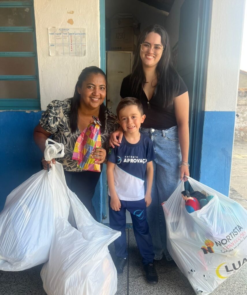 Sophia já trabalhou na creche e mantém um vínculo afetivo com o espaço. Neste ano, ela decidiu repetir o gesto e envolver também o irmão, Heitor, que participou ativamente das doações. Juntos, prepararam brinquedos usados, mas em bom estado de conservação, e também presentearam as crianças com brinquedos novos individualmente .